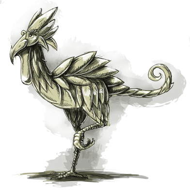 Connu pour son très mauvais caractère, le woden, ou Coureur du Vent, est un incontournable des Hautes Herbes. Partout, on aperçoit son long cou qui dépasse des herbes folles. Il s’agit d’un oiseau doté de deux grandes pattes et de si petites ailes qu’il lui est bien impossible de décoller, et encore moins de voler. Très rapide, il échappe à nombre de prédateurs et rattrape presque chacune des proies qu’il prend en chasse. Colérique, il n’en reste pas moins un fidèle compagnon pour les Voyageurs : juché sur son dos, on culmine facilement à trois mètres de hauteur, ce qui est pratique pour se repérer.